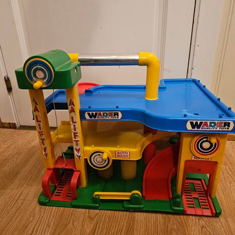 Selger pent brukt bilbane lastebil med heis, lyd og lys. I tillegg følger 6 lekebiler.