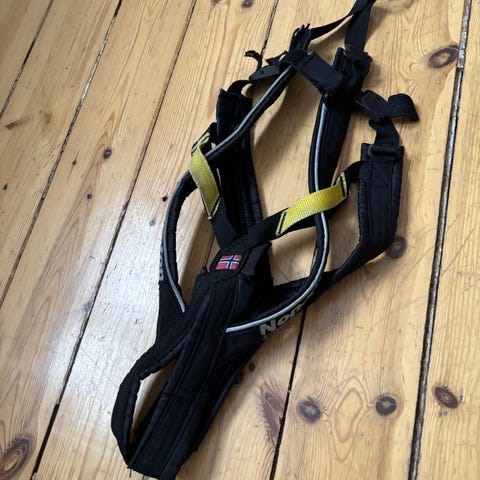 Sele til hund, tror det er «free motion»kjøpt for mer enn 5 år siden til vår forrige hund. Ta evt med hunden for å prøve om selen passer.Strl nr 3, se bilde for størrelse hund selen passer til