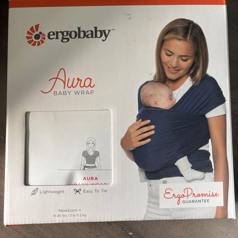 Mykt Aura Wrap Knit bæresjal fra Ergobaby. Perfekt for små babyer som ønsker å være nær foreldrene sine.