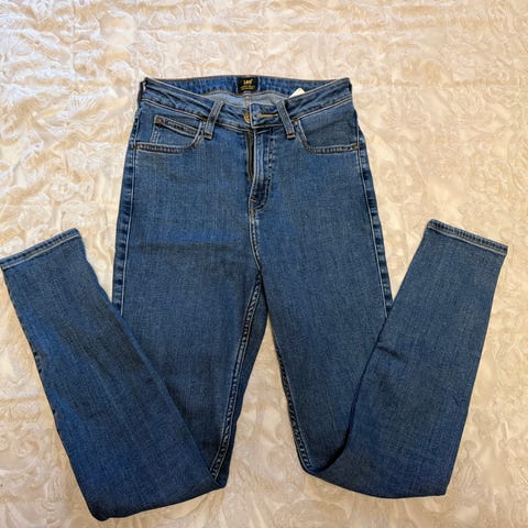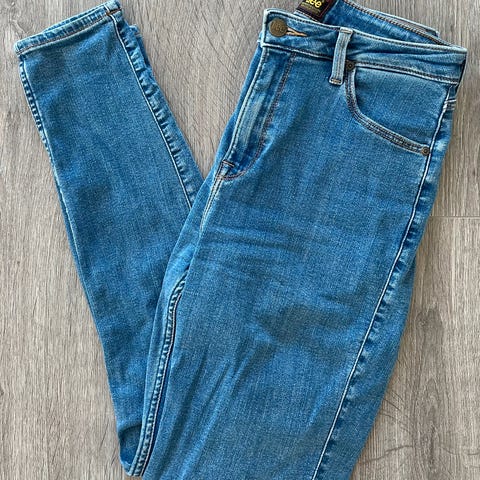 Blå og sort Lee Ivy, str. 29/31 selges. De er omtrent ikke brukt og framstår som nye. Høyt liv, god stretch og veldig behagelig passform. Skinny modell. Selges samlet for 350 kr.