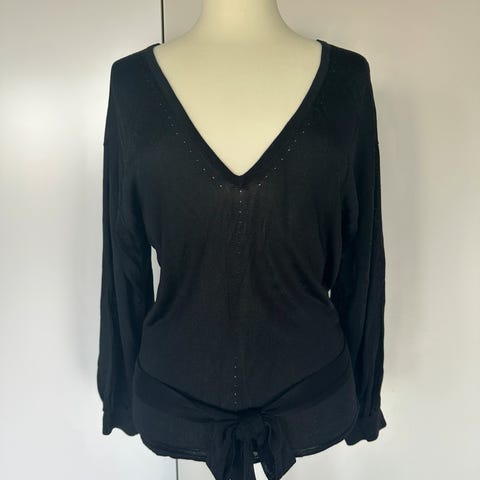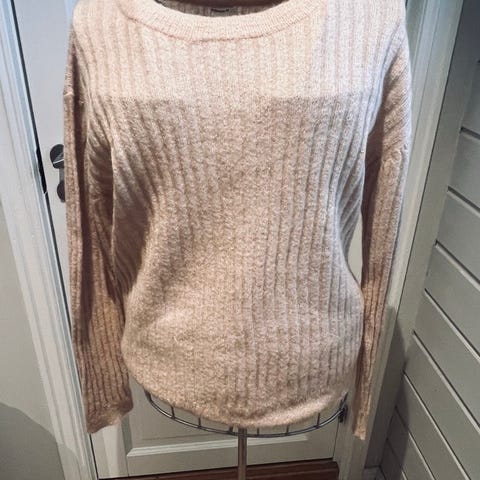 Oransje genser med grå striper fra Filippa K i 100% Tencel. Størrelse L. Ermene er noe kortere enn full lengde