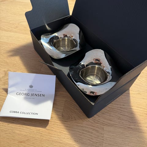 2 stk Georg Jensen Cafu Collection Telysholdere som aldri har blitt tatt i bruk.