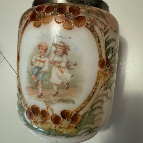 Nydelig håndmalt blomservase med liljekonvall mønster på begge sider.Signert.Måler 17 cm bredde,20 cm høyde,3 cm dybde.I veldig god stand.IKKE PRUT! jeg overser prutemeldinger