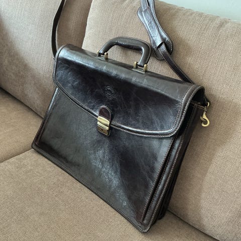 Selger en elegant skinnveske i ekte lær, perfekt som jobbveske / dokumentmappe / PC-veske.