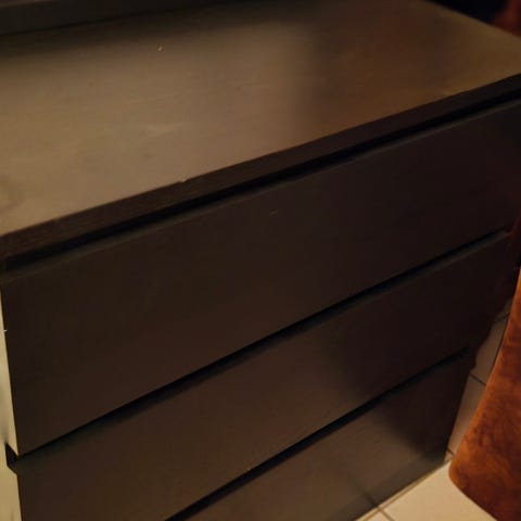 Kommode som har stått som oppbevaring på vaskerom.
