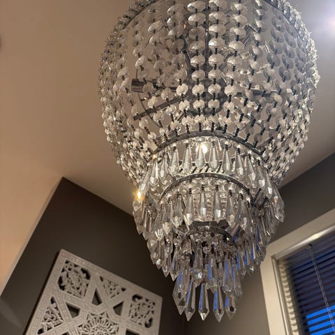 Vi selger vår kule lysekrone da vi skal flytte.