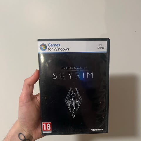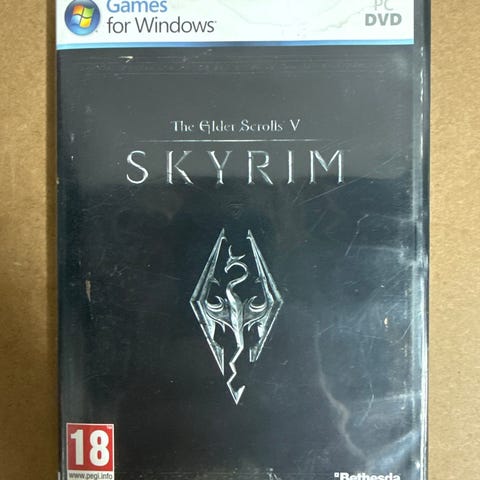 The Elder Scrolls V Skyrim PC-spill på fysisk CD. Spillet tilhører PC-plattformen og leveres på en enkelt plate.