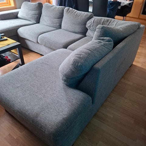 Selger pent brukt hjørnesofa med sjeselong og endeavslutning fra Bohus, kjøpt høsten 2021. Sofaen er pent og lite brukt da denne har stått nede i kjellerstuen.
