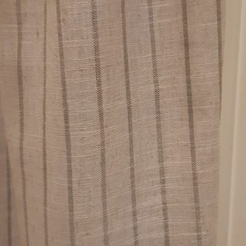 4 Høyder m Lin gardiner m grønnlige striper, fra Prinsess, selges kr 350 pr stk. 4 mnd gammel