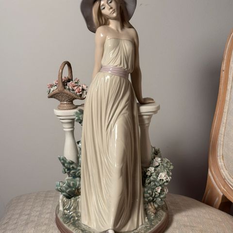 Nao by Lladro porselensfigur med tittelen «Jente med hatt som står med en vannkanne».