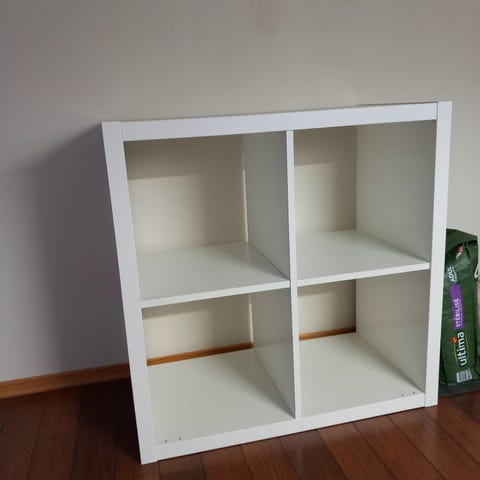 Pult og hyller gis bort.