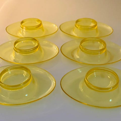 Grytene og skorsteinen er løse. Vet ikke om hele, eller deler, kan være hjemmelaget. På innsiden av skorsteinen kan man skimte at metallet kan stamme fra en blikkboks. B:17, D:10, H:8 cm. Skorstein ca. 9 cm. Må hentes i Moelv.