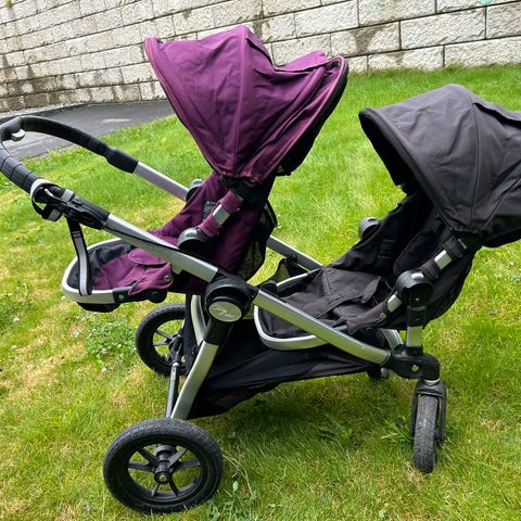 Baby Jogger City Select Lux tvillingvogn i grå farge. Egnet for transport av to barn samtidig. Den har over 20 konfigurasjonsmuligheter, for eksempel kan barna vendes mot hverandre eller mot den som triller. Punkteringsfrie hjul med god fjæring og låsbare fronthjul. Brukt som reisevogn, enkel å frakte/legges sammen.