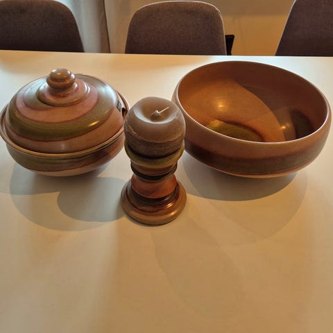 Keramikk krus , askjetter og eggeglass fra Årvoll keramikk selges