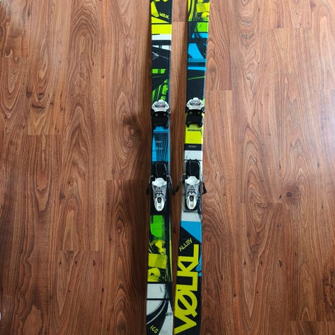Pent brukte twintipski fra Volkl. Utstyrt med robuste bindinger fra Marker.