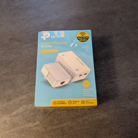 TP-Link AV1000 Gigabit Powerline Starter Kit med nettverkstype. Helt ny men bare har blitt åpnet, men ikke brukt. Selgs for 999 kr