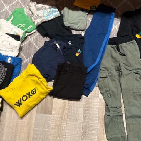 Klesspake etter 6 åringer med 2 fleece,2 hettegenser, 5 t skjorter, 4 lang t-skjorter, 4 bukser og 1 pysj. De hettegenser er i størrelse 128, men er lite i størrelse. Fint brukt😊