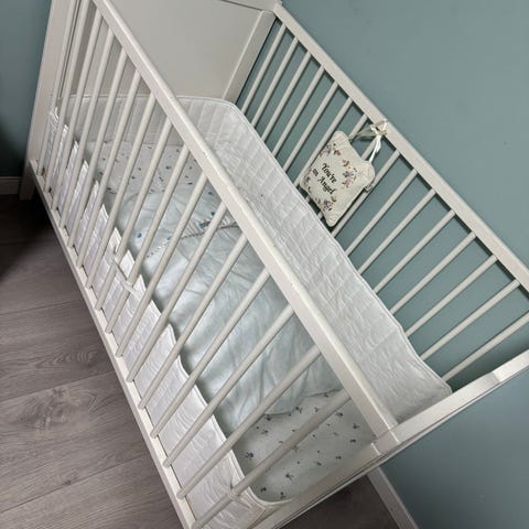 Sprinkelseng selges. En av langveggene kan senkes halvveis ned, veldig praktisk!