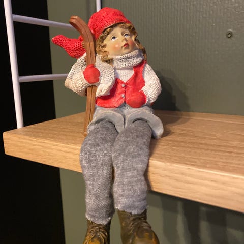 Søkeord: nisse, nissebarn, vinterbarn, snøbarn, snebarn, snø, sne, skigåer, jul, julepynt, juledekorasjon, dekorasjon, interiør, pynt, pynteting, figur, julefigur, skigutt, skijente