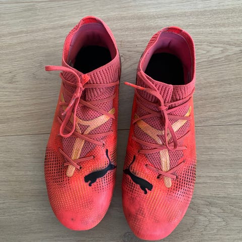 Puma FUTURE Z 4.1 FG/AG fotballsko i størrelse 37,5. Skoene er røde/rosa og designet for bruk på både fast og kunstgress underlag. Materialet består av tekstil og syntetisk materiale, med en sokkelignende passform for god støtte.