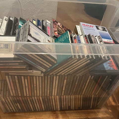 En samling av ulike CD-plater som inkluderer musikk og lydbøker. Inneholder flere titler og sjangre, med varierende artister og innhold. Passer for lyttere som ønsker et bredt utvalg av lydmedier.