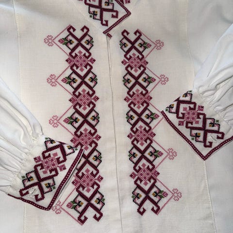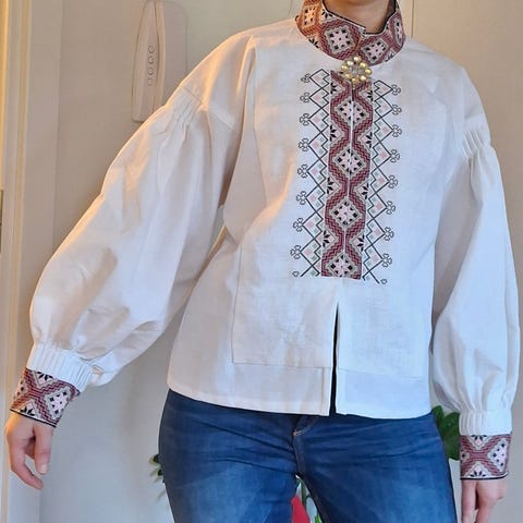 Beltestakk-skjorte i lin-korssting (kan tilpasses)