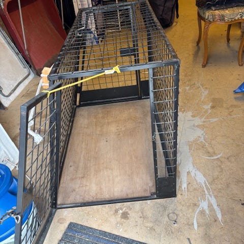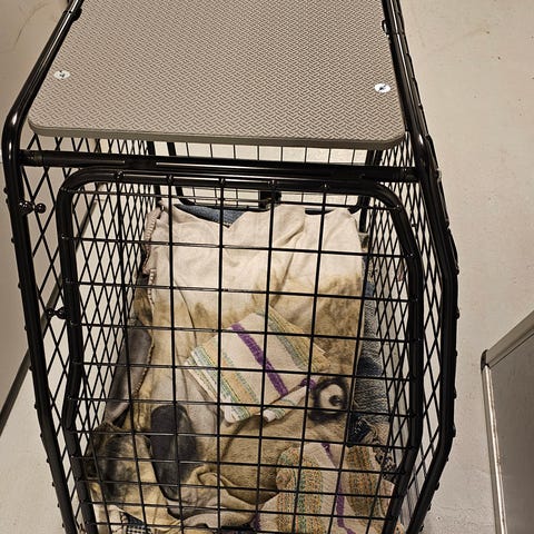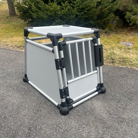Modifisert selv og har fungert utmerket. Passer perfekt i Audi og din store hund 25 kg og oppover har like god komfort i bagasjerommet som resten av passasjerene.