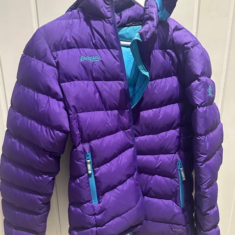 Bergans dunjakke i størrelse 164 for jente. Jakken er grønn og laget med dun som isolasjonsmateriale. Egnet som ytterplagg for kalde værforhold.