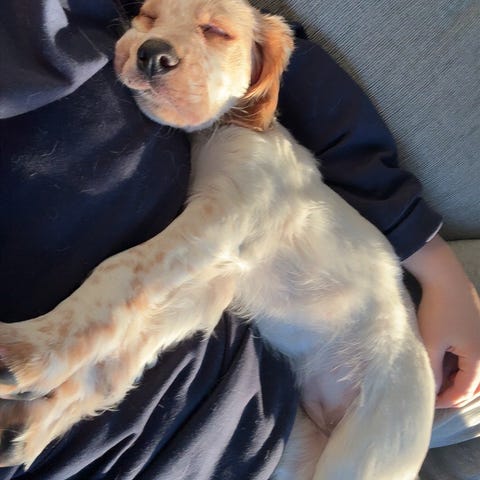 Lyse, fine Engelsk setter valper ble født den 16. Januar. Hele kullet blir trolig tricolor.