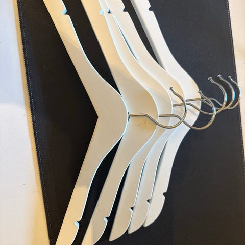 IKEA barneklestenger laget av naturtre. Passer for oppheng av barneklær. Leveres i sett med flere kleshengere.
