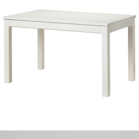 Stort, solid og praktisk spisebord med innleggsplate. Lengde 182 cm med innleggsplate og 152 cm uten. Hvite ben i tre, kirsebærtrefarget bordplate i finer. Bordplaten har bruksmerker men har aldri blitt pusset, så lett pussing og ny lakk vil antagelig få bordet til å se bra ut. Må hentes.