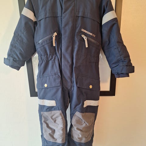 Godt brukt Didriksons kjeledress/vinterdress som er sydd/lappet på kneet. Slitasje på baken og nederst på beina.Ellers hel og brukende.