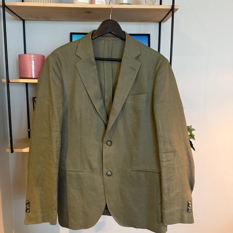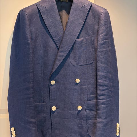Dressmann Slim Fit blazer i beige farge, laget av lin materiale. Passer herre i størrelse 46.
