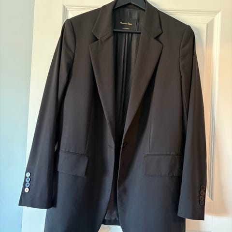 Massimo Dutti ull blazer i størrelse 40 for kvinner. Jakken er laget av ull 100%. Passer til formelle og uformelle anledninger.
