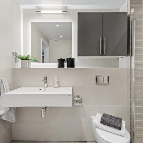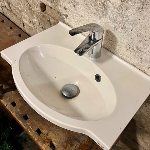 Servant med Grohe blandebatteri og avløpsventil hvit