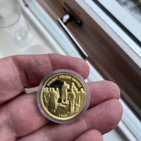 Gullmynt fra OL på Lillehammer vurderes solgt. 0,5 oz gull. Leveres i uåpnet original plastkapsel.