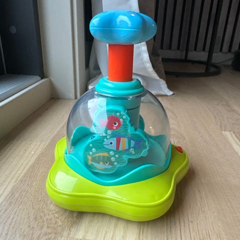 Fisher-Price Barnas leke kjøretøy i rosa farge. Designet for barn, laget av plastmateriale. Utstyrt med et xylofon-instrument foran for lydlek.