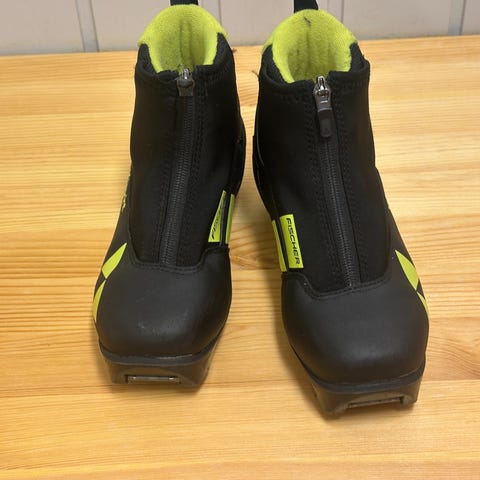 Madshus skisko i svart og rød farge. Skiskoene har glidelås foran for enkel på- og avkledning. Egnet for bruk med langrennsski. Str 34