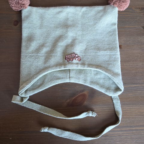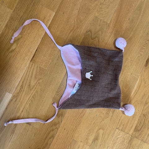 Pent brukt lue fra Kivat i str. 1. Litt slitt på duskene, ellers i god stand.
