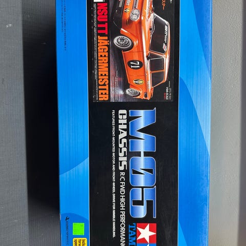 Traxxas radiostyrt bil i hvit farge. Modellen har detaljer i svart og rødt, med nummer 4 på taket. Egnet for bruk som fjernstyrt kjøretøy.