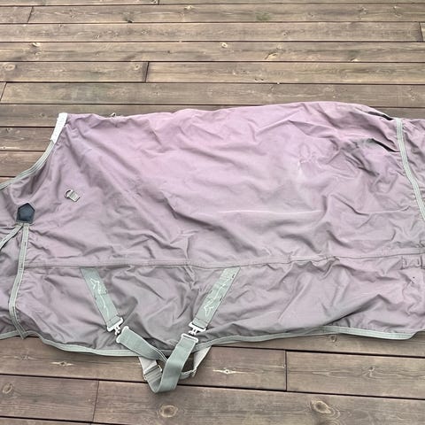 Grønt Weatherbeeta Landa Heavy str 145cm selges. 360gr. Pent brukt, med alle spenner inntakt (tapet med gaffa på innerste ringer foran da det måtte festes ytterst ved bruk). Polstring over manken. Et lite hull på innsiden av halsen, men har ingen betydning for bruken.