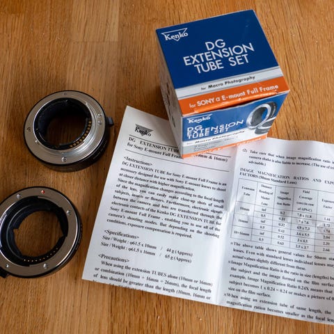 Meike extension tubes/mellomringsett til Sony e-mount. 10mm og 16mm. Med metalloverflater, og autofokus på objektiv fungerer.