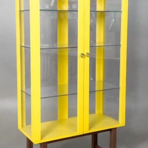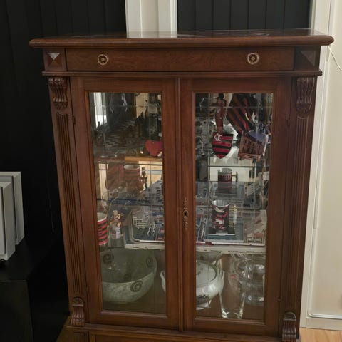 Svart vitrineskap med innfelt belysning. Kjøpt på fabmøbler.
