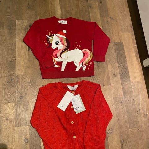 H&M rød glitter jakke | Str. 116🎅🌟