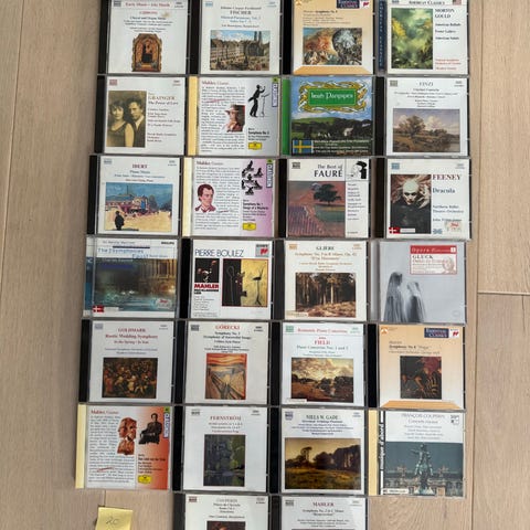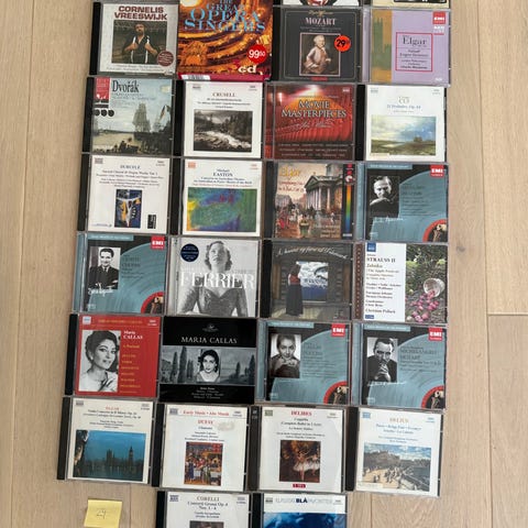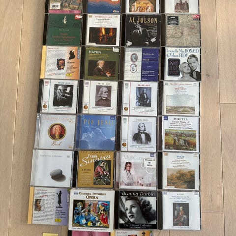Pakke med flere CD-er som inneholder klassisk musikk. Inkluderer verk av ulike komponister og artister. CD-ene har standard størrelse og er i plastomslag.