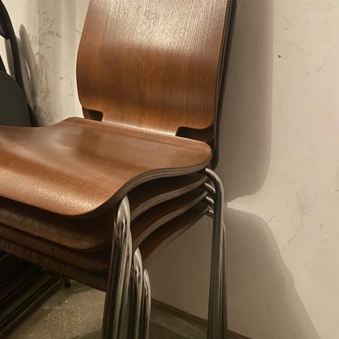 Selger spisebord med stoler, har kjøpt sett på Kalma Interiør. Stoler trenger vask og slitne. Bord er av ekte eik, tidløs modell.