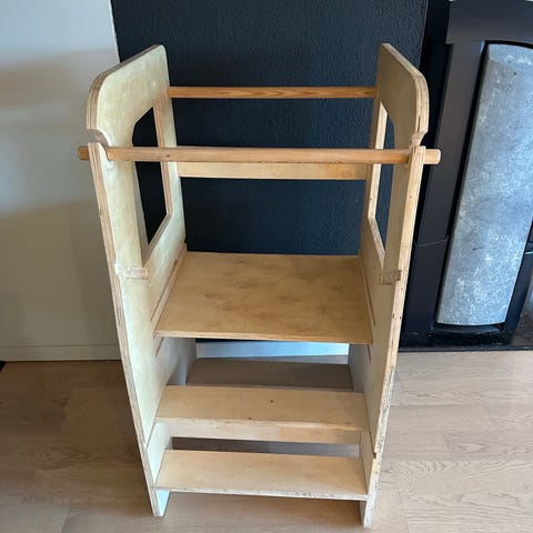 Selger en håndlaget oppbevaringsboks i tre, med tilpasset lokk og solide detaljer. Boksen har et varmt, naturlig uttrykk og et gjennomført håndverk, med dekorativ skjøt og utskåret detalj på siden som gir den et unikt preg.