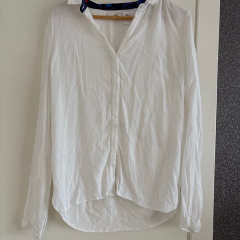 Moods of Norway skjorte i størrelse M for kvinner. Laget av 100 % bomull i hvit farge. Skjorten har lange ermer og knappestolpe foran. Passer til hverdagsbruk og kan vaskes ved 40 grader.
