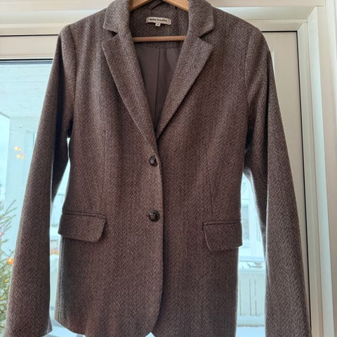 Selected Femme lang kåpe, størrelse Medium. Passer både S og M. Håndlaget og ullblanding med 50% ull.