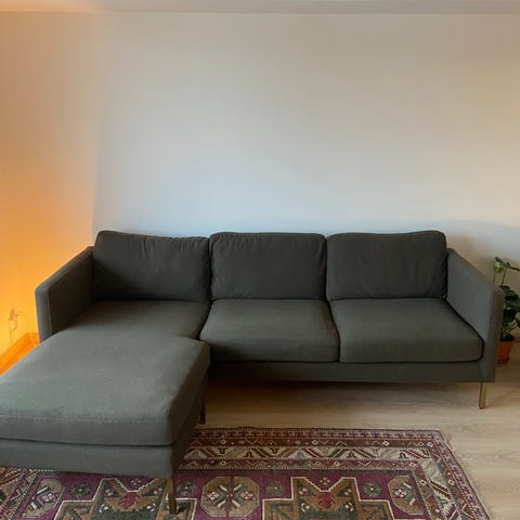 Sofaen ble kjøpt hos en interiørbutikk og er veldig komfortabel, men husker ikke merket.